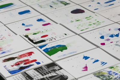 Jedes Exemplar des Buches „Konstruktion Landschaft, Fläche | Raum | Kontur“ hat einen individuellen Siebdruck am Cover (300 nummerierte Unikate), das Buch „Konstruktion Landschaft, Landschaft | Struktur“ ist von Hand geheftet, der Umschlag wurde im Siebdruckverfahren bedruckt.