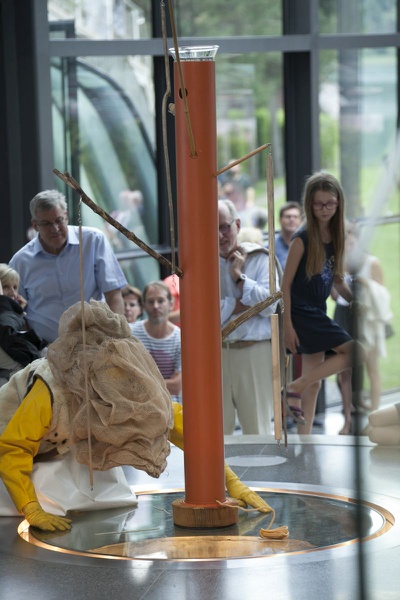 Aldo Giannotti und Karin Pauer bieten eine performative Hausführung an, welche sich auf den 30-jährigen Entstehungsprozess der Gebäude-Skulptur konzentriert. Basierend auf Erzählungen über Herausforderungen, Misserfolge, Hürden und Kämpfe, die mit der Realisierung des Mammutprojektes einhergingen, wird eine Geschichte konstruiert, durch die das Gebäude aus alternativen Perspektiven erlebt werden kann.