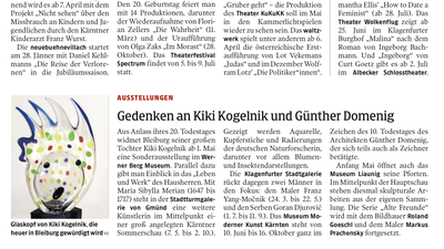 Kleine Zeitung: "Gedenken an Kiki Kogelnik und Günther Domenig"