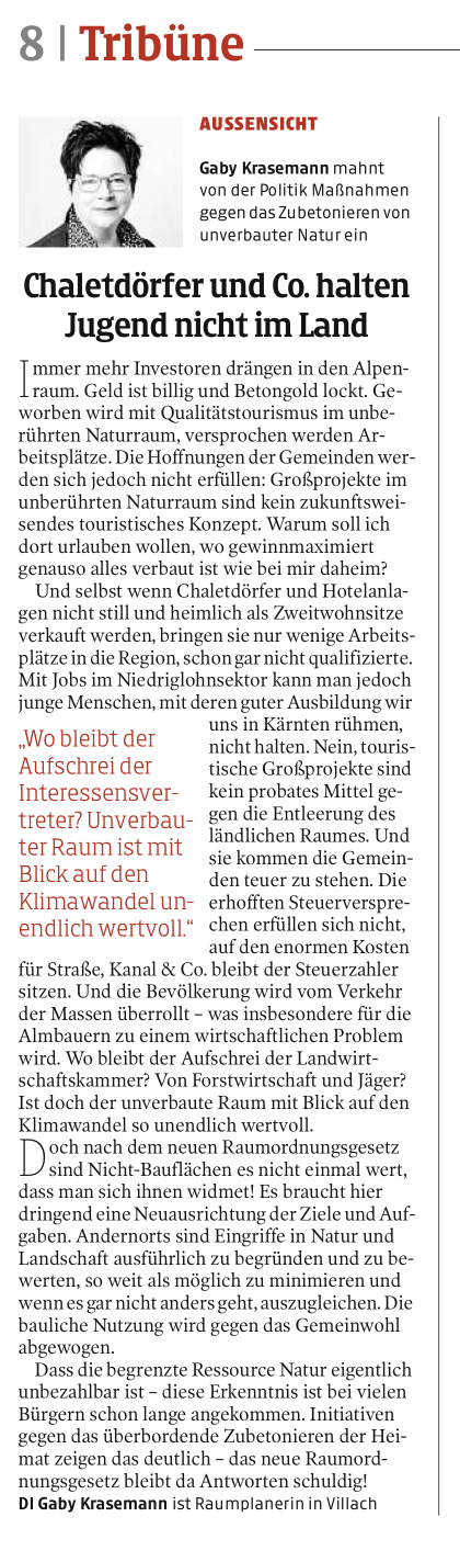 Kleine Zeitung:" Chaletdörfer und Co. halten Jugend nicht im Land