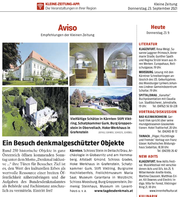 Kleine Zeitung: "Ein Besuch denmalgeschützter Objekte"