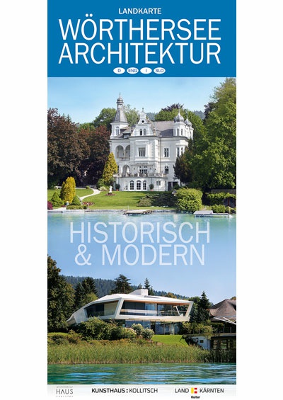 Karte mit 54 historischen und modernen Villen/Bauten um den Wörthersee. Im ArchitekturHaus Kärnten gratis erhältlich.