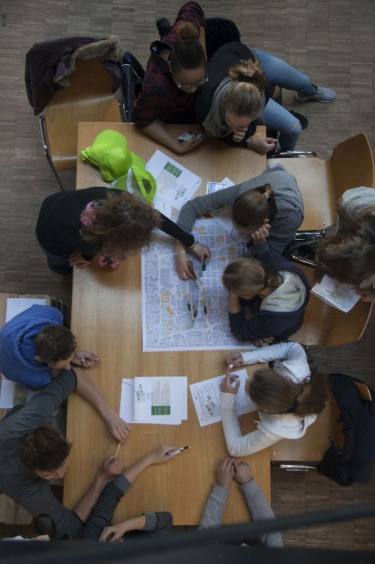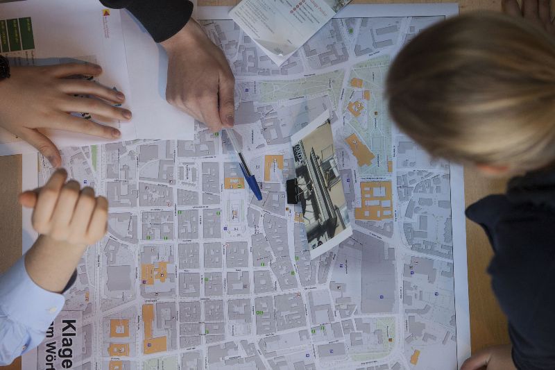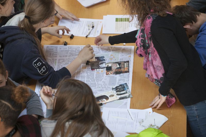 An einem gemeinsamen Vormittag mit der Bildungs- und Berufsorientierung Kärnten werden die Schülerinnen und Schüler durch Wahrnehmungsübungen und Grundlagen der Architektur und Baukultur vertraut gemacht. Ziel ist es ein bewusstes Erkennen und Begreifen von Elementen, Materialien und den Prozessen in einem Stadtraum wie Klagenfurt aufzuzeigen. Mit speziellen Arbeitsaufträgen werden die SchülerInnen zu Architekten, Raum- und Stadtplanern und erkunden dabei die Klagenfurter Innenstadt. Ausgestattet mit Fotoapparaten, Stadtplan und Zeichenblöcken wird die Erkundungstour dokumentiert. Ihre Entdeckungen werden mit Fotos festgehalten und das Erlebte und Erforschte wird den anderen Gruppen in einer Abschlusspräsentation vorgestellt. Sie schlüpfen in die Rollen der jeweiligen Berufe und schildern aus ihrer Sicht was sie wie und warum verändern würden.