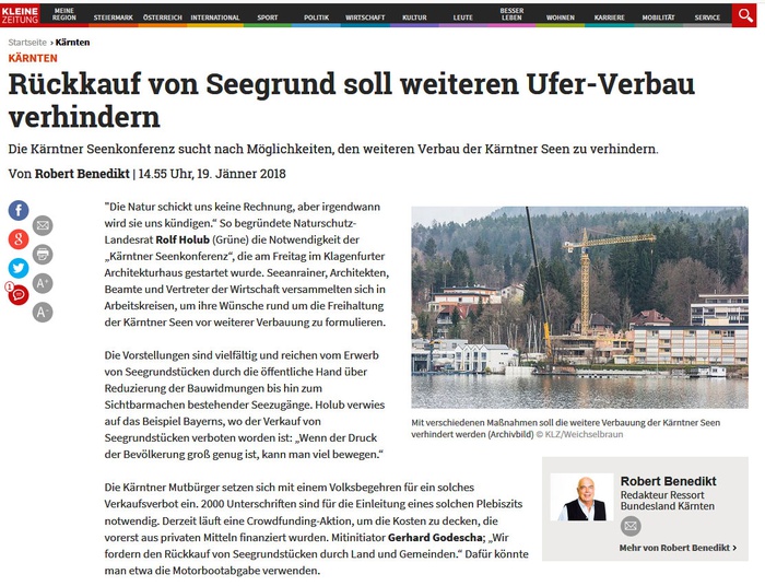 Kleine Zeitung: Rückkauf von Seegrund soll weiteren Ufer-Verbau verhindern