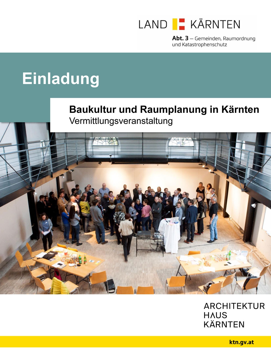 VermittlungsveranstaltungDie Siedlungstätigkeiten im Land Kärnten werden besonders durch eine qualitätsvolle Baukultur und einer vorausschauenden Raumordnung geprägt. Deshalb ist es so wichtig den Gemeinden ein Handwerkszeug zu reichen, welches bei der Siedlungs-und Ortsentwicklung unterstützend wirkt. Dazu bietet das Land Kärnten in Kooperation mit dem Architektur Haus Kärnten einen Crashkurs zur Vermittlung baukultureller und raumplanerischer Werte an.