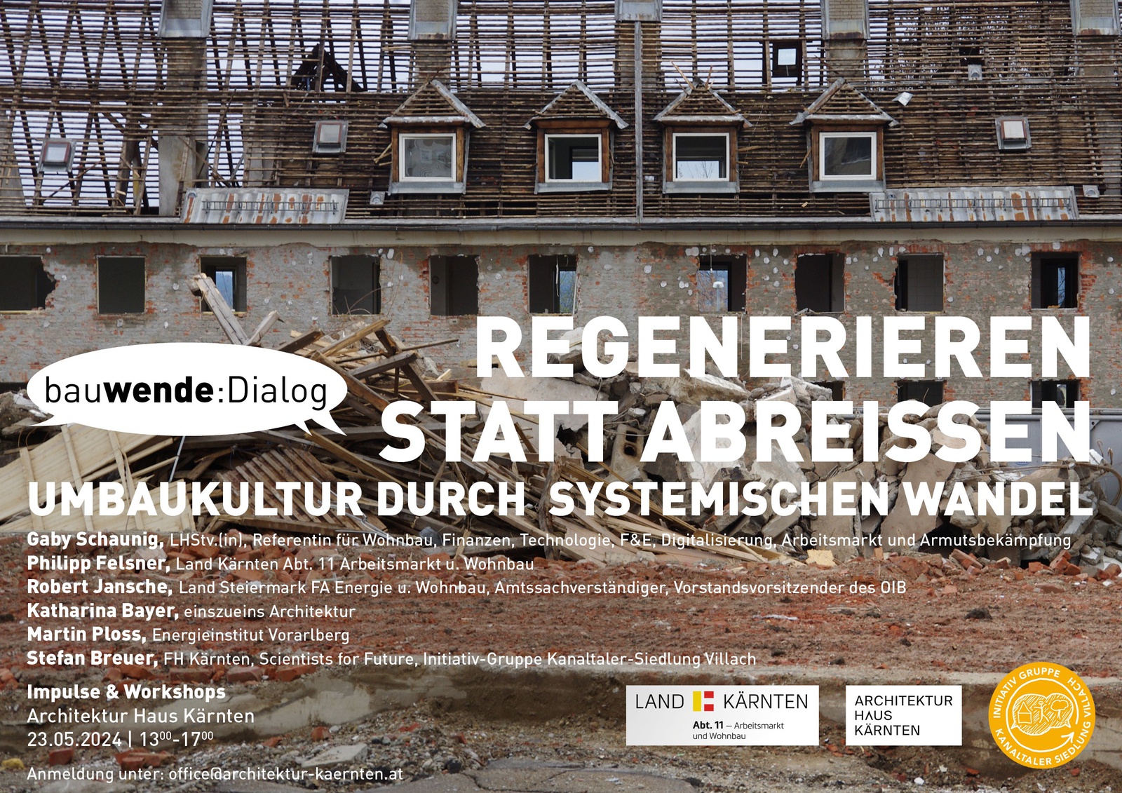 Teilnahme am bauWENDE:Diaolog nur mit Anmeldung unter: office@architektur-kaernten.at