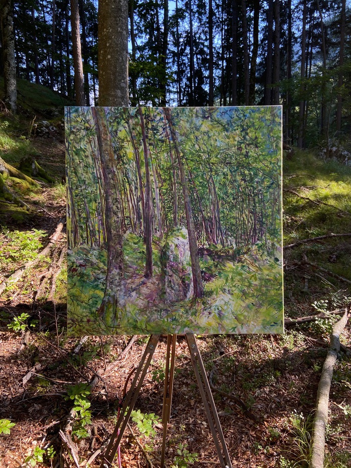 Markus Orsini – Rosenberg: „was wir sehen, ist was uns sehen macht !“ sieht Landschaft als „Sacro Bosco“ – Heiligen Wald – Natur als „Mutter – Materie“ und Ursprung des Sehens und der Malerei. Hans Werner Poschauko, ein genialer Zeichner und Maler, der ebenfalls bei Maria Lassnig studiert hat, und in dessen Tierbildern, psychodelischen Bildern und Textbilder, stark die feinen Schwingungen und Ebenen der belebten Natur mit viel Humor bespielt werden. Harald Scheicher, Nachfahre von Werner Berg und Arzt, hat die Malerei im Blut, ganz besonders die Landschaftsmalerei nach der Natur !