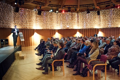 Daniel Fellner konnte als zuständiger Landesrat gemeinsam mit Hausherrn Bgm. Vouk, der Abteilung 3 des Landes Kärnten und dem Architektur Haus Kärnten mehr als 100 interessierte TeilnehmerInnen aus Politik, Verwaltung, Tourismus, und Wirtschaft begrüßen.